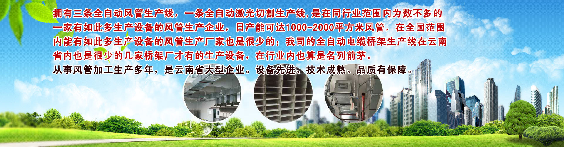 云南大军暖通设备工E有限公司是一家专业生产通风道、通风讑֤、电(sh)~桥架的风管加工厂家。云南大军暖通专业从事:(x)风管加工、通风道、通风讑֤Q风机、风阀、风口、消声器、防火阀Q、电(sh)~桥架、PP风管、镀锌板、通风净化系l的Ҏ(gu)设计、销售选型、施工调试、售后保L务? 云南大军暖通设备工E有限公司成立于2016q?2?2日,现已拥有三条全自动风生产线Q一条全自动Ȁ光切割生产线,是在同行业范围内为数不多的一家有如此多生产设备的风管生企业Q日产能可达1000-2000qxc风,在全国范围内能有如此多生产设备的风管生厂家也是很少的;我司的全自动늼桥架生U在云南省内也是很少的几家桥架厂才有的生产设备,在行业内也算是名列前茅。设备先q、技术成熟、品质有保障。可为广大客h供更快的生速度Q降低生产成本,提高工作效率Q羃短施工周期? 公司自成立以来,׃直把成ؓ(f)一家积淀(wn)深厚的百q老店作ؓ(f)q求目标Q努力汇聚业界精英,实时汲取国内外先q的讑֤、材料、技术、信息及(qing)理Ҏ(gu)和经验,为客h供优质、适用、经的产品、服务及(qing)一站式解决Ҏ(gu)Q企业在激烈的?jng)场竞争中始l保持竞争力和敏锐度Q在普遍q求“大而强”的时代里,我们却选择?jin)追求“小而美”。因Z注,所以专?-从而以口碑在行业内牢牢获取?jin)一席之地?